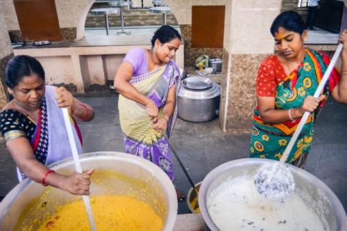 The menu today includes hot sambhar rice (rice cooked with lentils and