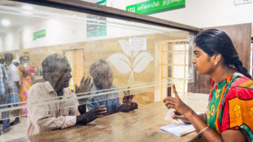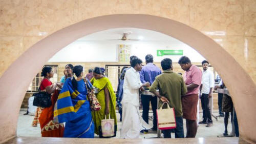 queue of lunch-goers at the amma canteen in Pallavaram town, just