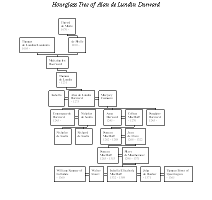 Alan Durward born about 1216, died 1275, married Marjory, daughter of Alexander II