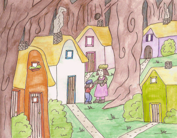 different color and giant trees surrounded the clearing where the homes