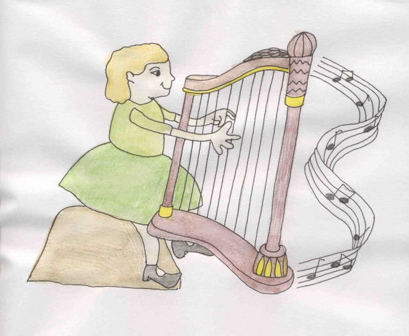 harp. She started to pluck the strings. They vibrated in her hand and sang