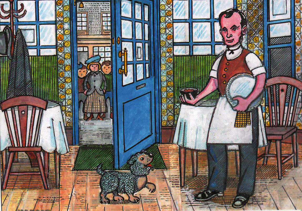 A set of six cards showing the restaurant where Bobby headed for his dinner