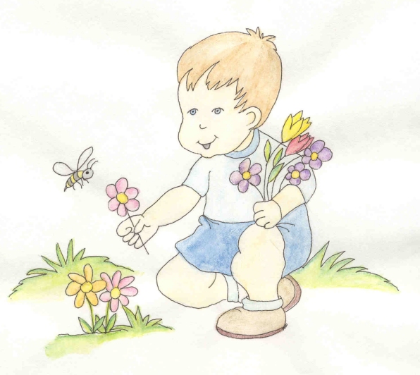 Just then the back door opened. "What’s this?" Gran said. "You’ve picked my flowers!" She wasn’t very happy with Jacob. He began to frown. He thought she’d be happy that he’d picked them for his mum. Gran saw how sad he looked. "It’s all right, Jacob. We’ll put them in a vase and give them to your mum. They’re beautiful," she smiled. She put the flowers into a vase and filled it with water. The budgie saw them and started to sing. "Even my budgie thinks they’re beautiful," Gran laughed.