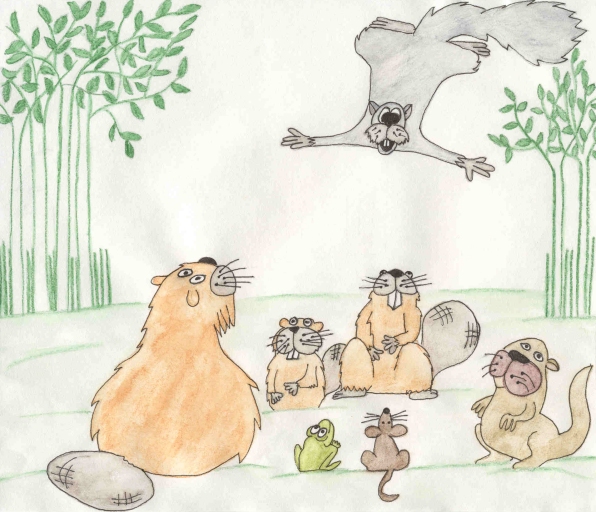 the flying squirrel all gathered twigs while the beavers gnawed down a few