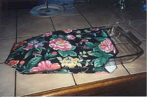 Velcro end and two angles open. Slide your 13 X 9-inch dish in and