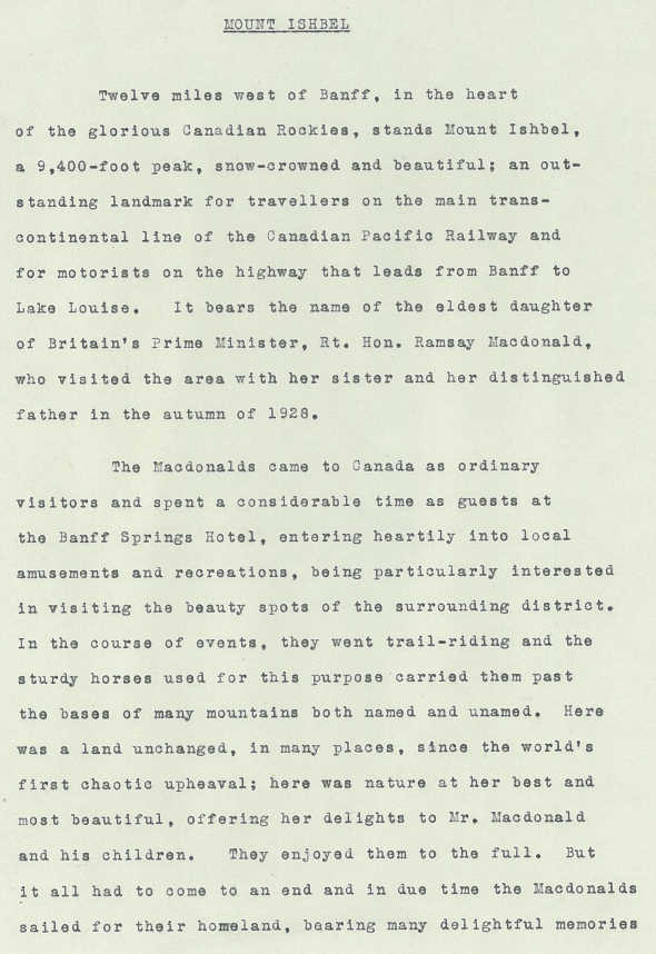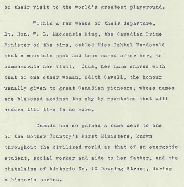 named after Ishbel MacDonald by MacKenzie King who Ramsay befriended
