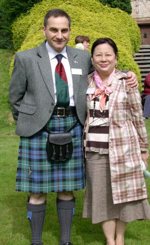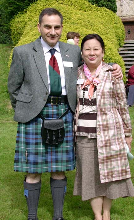 the Clan MacKenzie Society of France with his wife. On the right shows the