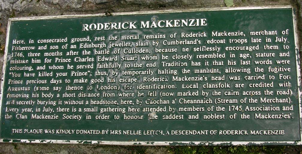 memorial to Roderick Mackenzie, an officer in the Jacobite army, who may