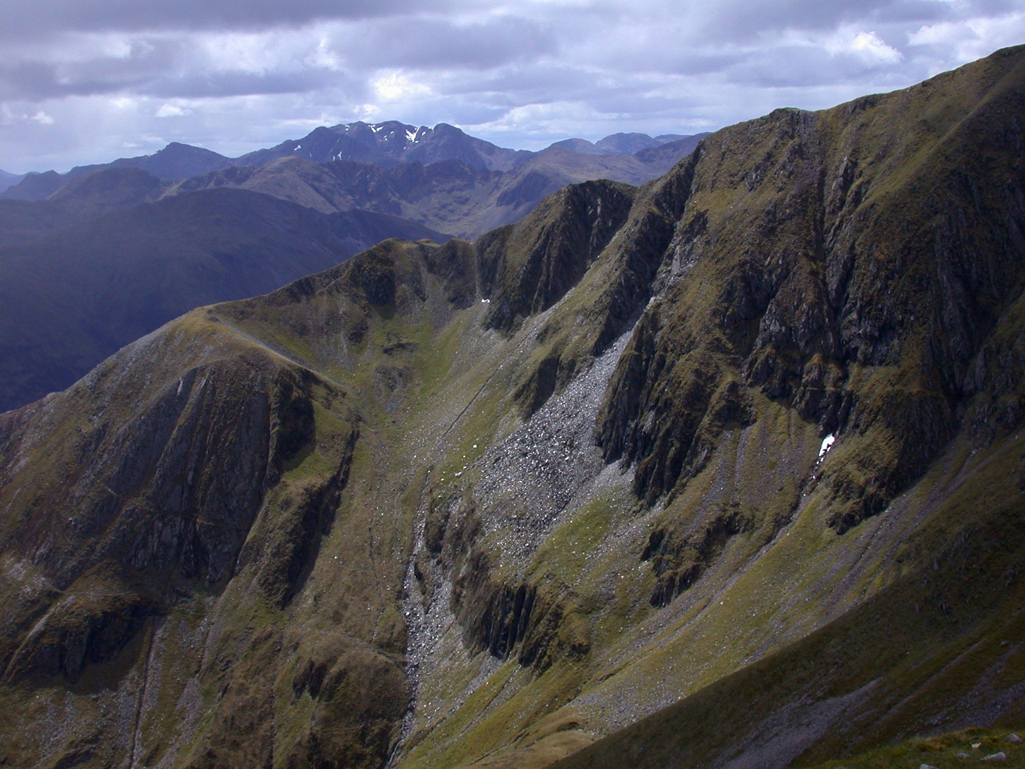 The steep cliffs on the north side of Am Bodach (Old Man) in the Mamore