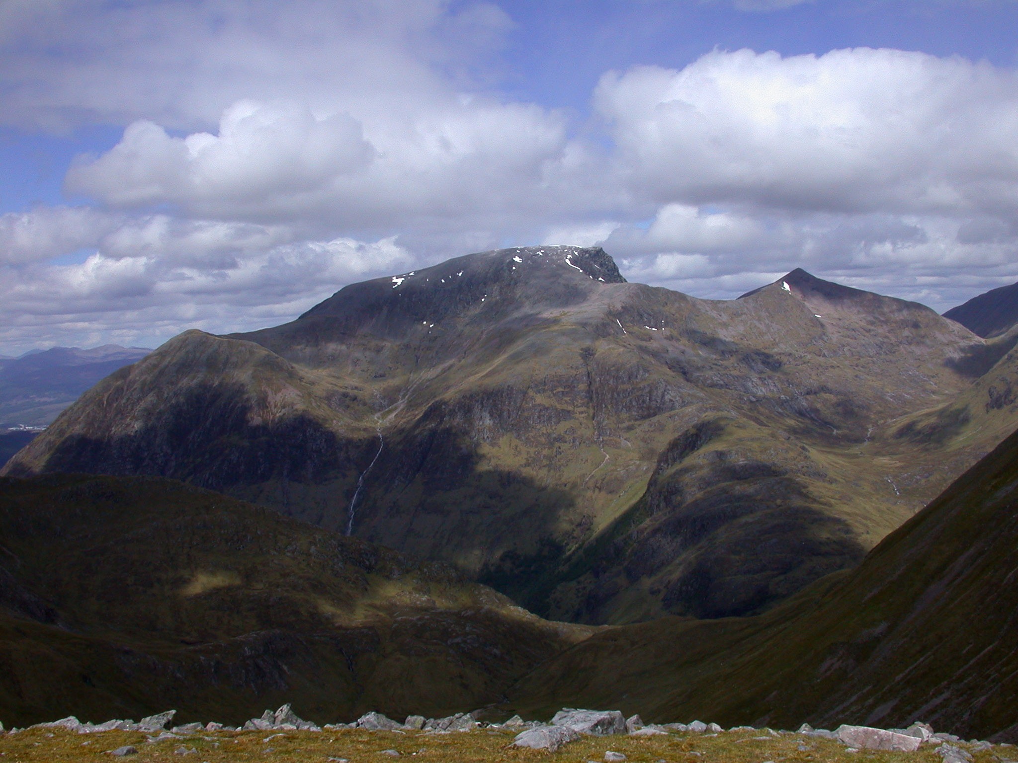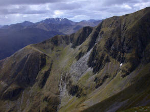 in the Mamore Mountain Range. The sharp peak on the right is Carn Mor