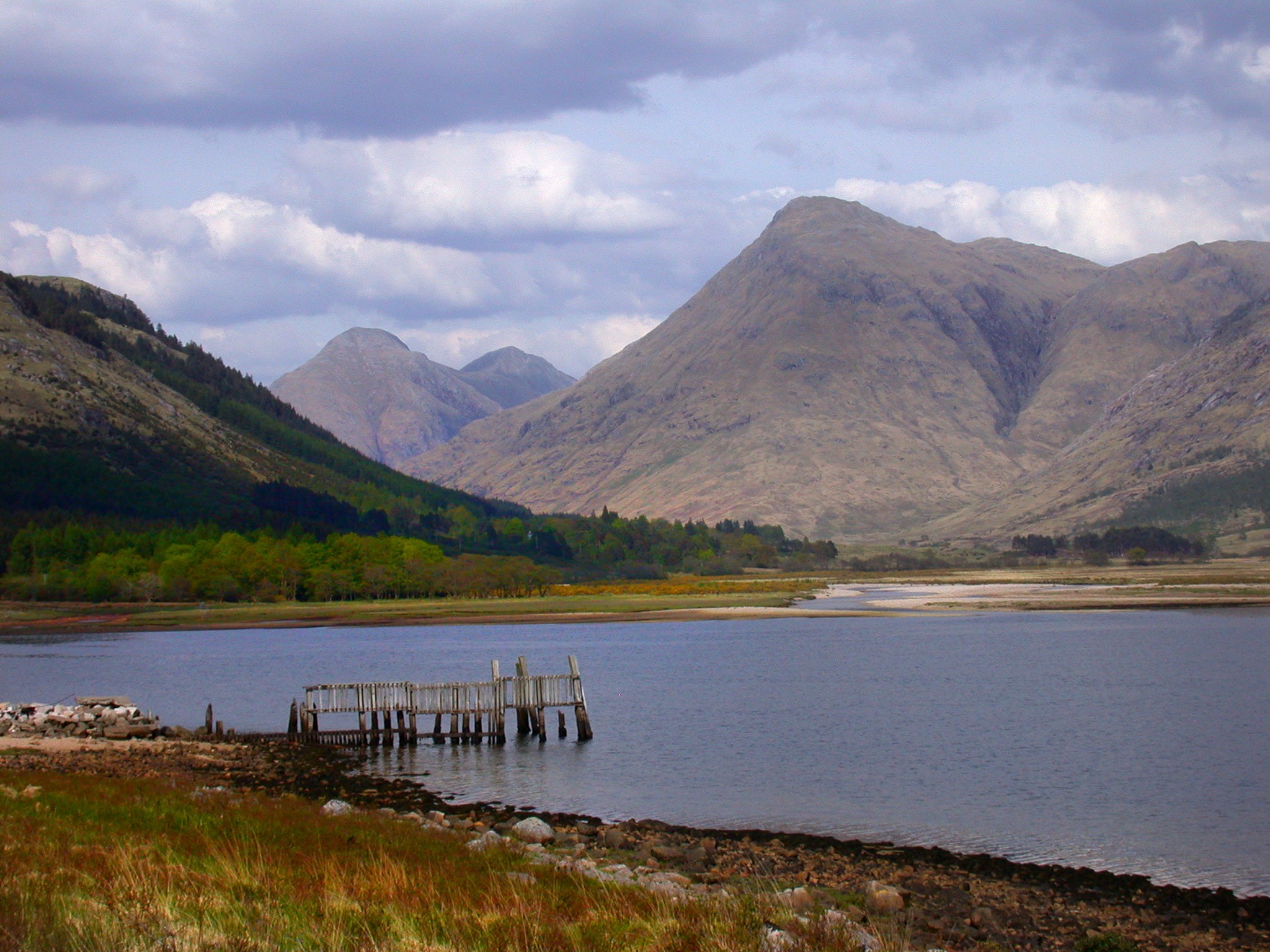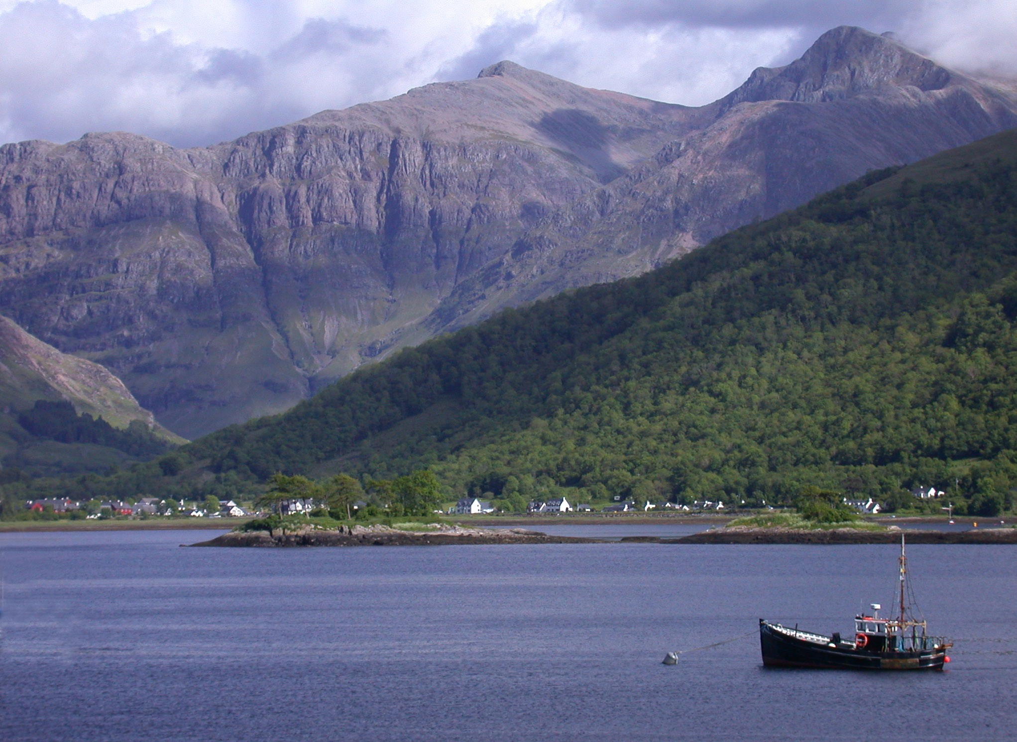 Looking south across Loch Leven towards Glencoe Village and the cliffs of