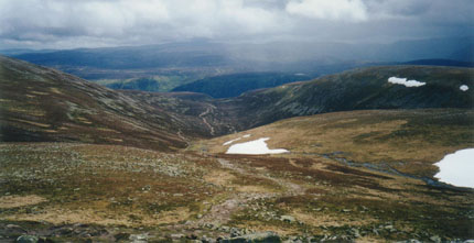 Looking north to the highest point: Cac Carn Beag (pass of the