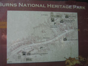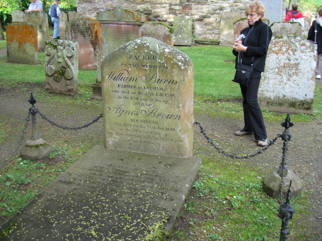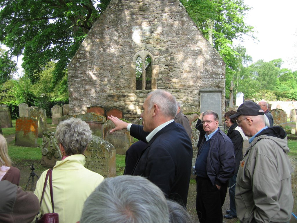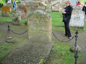 Auld Kirk Alloway with tour group and Stone in Memory of William Burns and Agnes Brown, parents of Robbie Burns