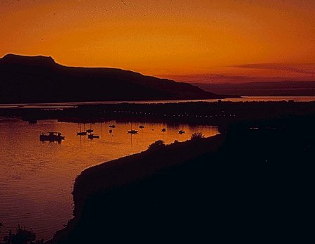 Sunset over village of Ullapool