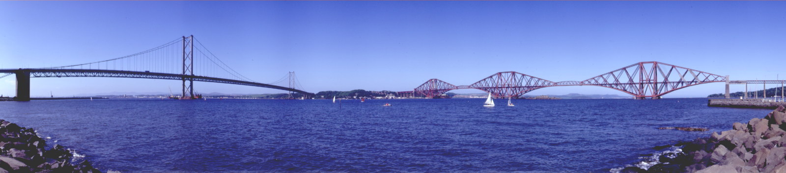 A 180 degree photograph of the Forth Bridges.The Forth Railway