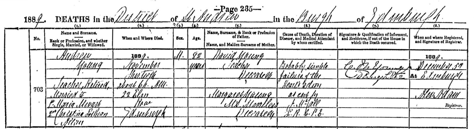 Andrew Young's birth does not appear in the Old Parish Records, but an