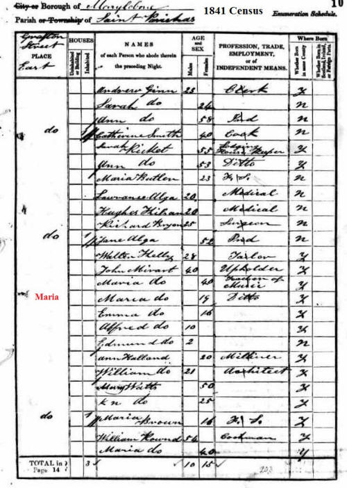 The 1841 Census for Marylebone shows the Mivart family with Head of Family,