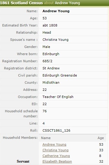 Marriage: 07 AUG 1851 Saint Cuthberts, Edinburgh, Midlothian, Scotland