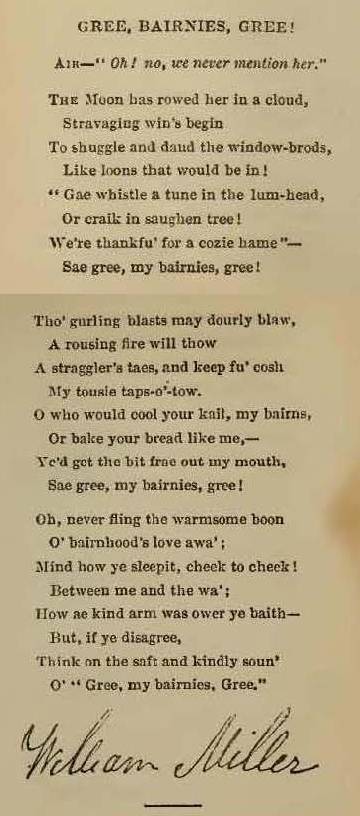 poems include 'A Wonderful Wean', 'Gree, Bairnies Gree', 'The