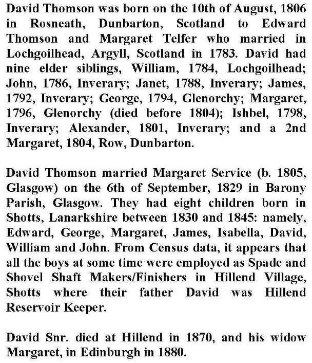 David Thomson (1806-1870), Reservoir Keeper at Hillend, Shotts, who became a poet late in life.