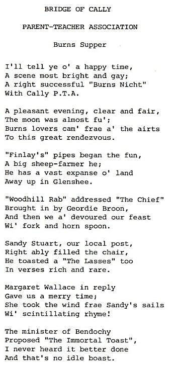 Bridge of Cally Parent-Teacher Association Burns Supper