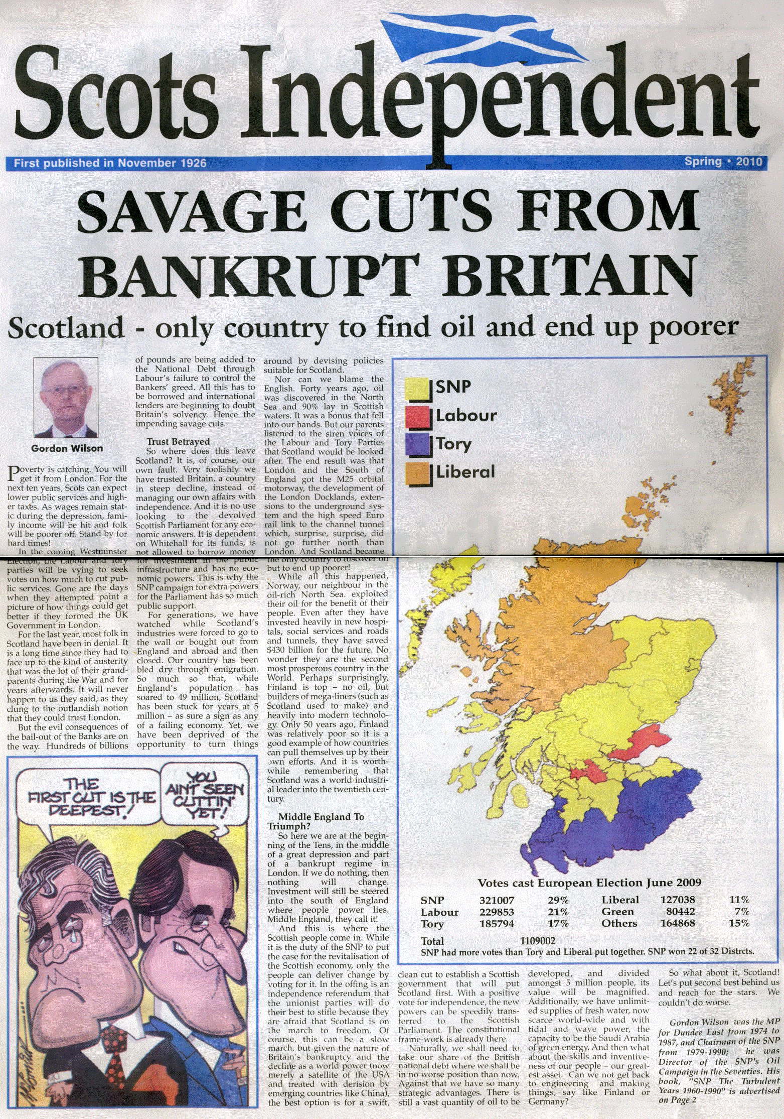 Here is a scan of the front page of the Spring special edition of the Scots Independent newspaper...