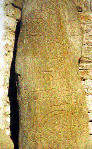 Monymusk cross slab in vestibule of St Mary's 12C chapel, Monymusk, Aberdeenshire.