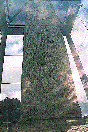 I stones have now become heavily interlaced with Christian knotwork and the lowest panel