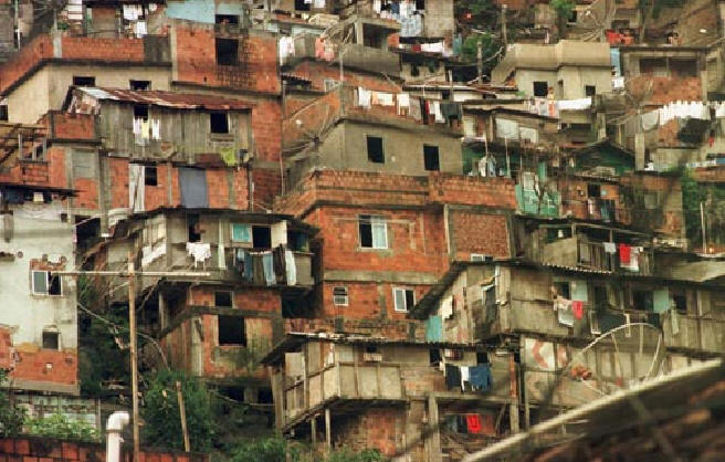 sections comprised of shanties, shacks, and makeshift huts inhabited by