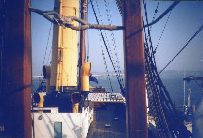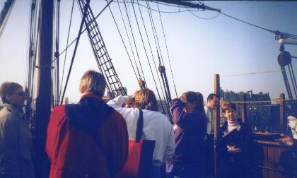 Suzanne, Lia, Robbie, Nickie and Joy on the deck of the RRS Discovery on a
