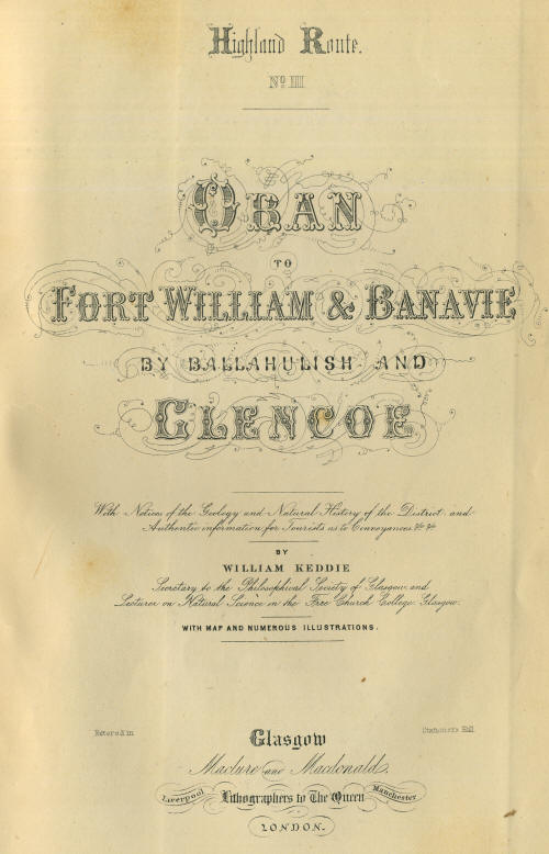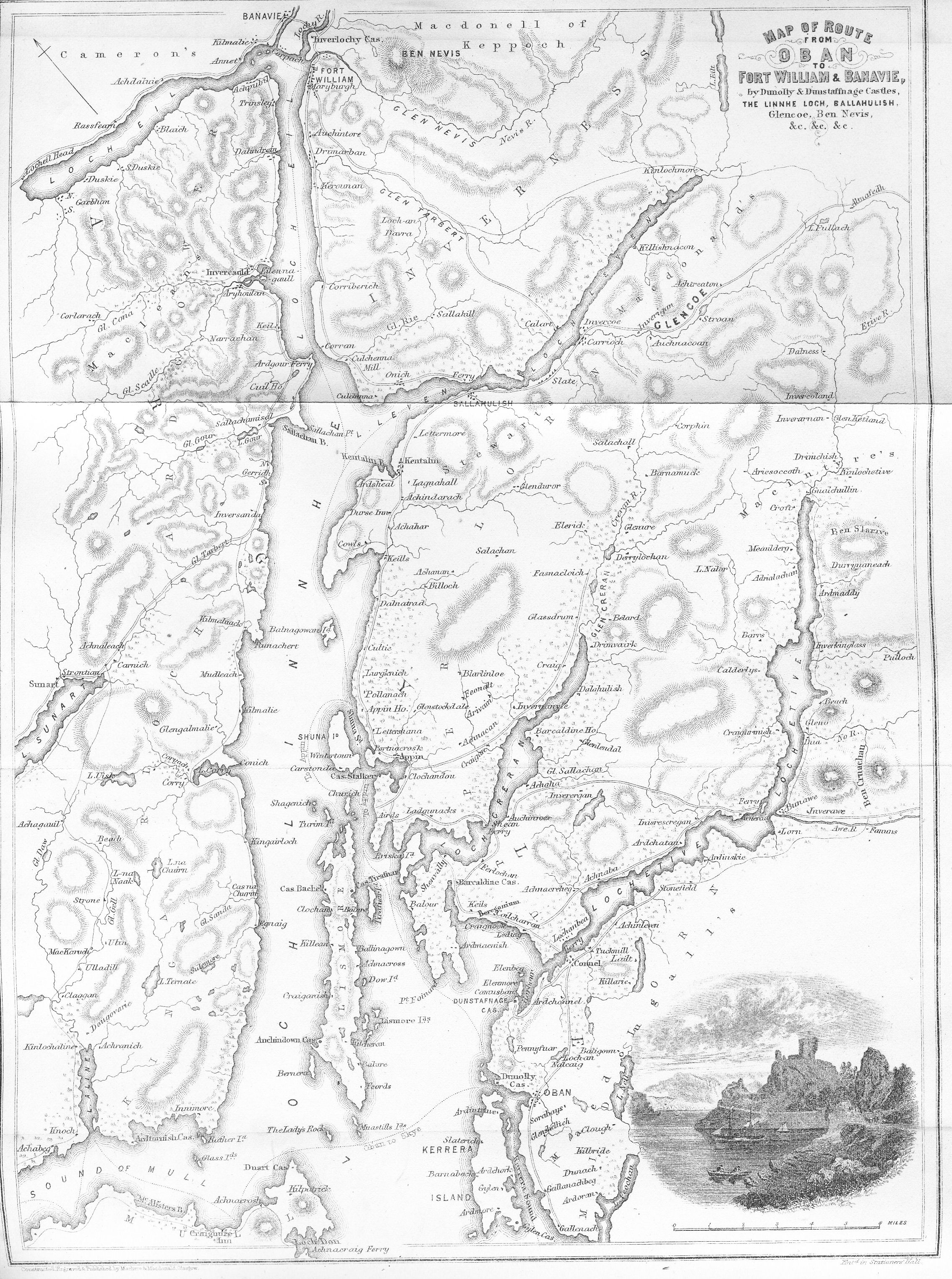Map of Route from Oban to Fort William & Banavie by Donally and Dunstaffnage Castles, The Linnhe Loch, Ballahulish, Glencoe, Ben Nevis, &c.