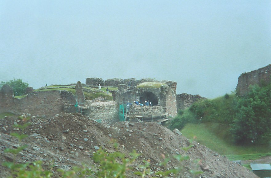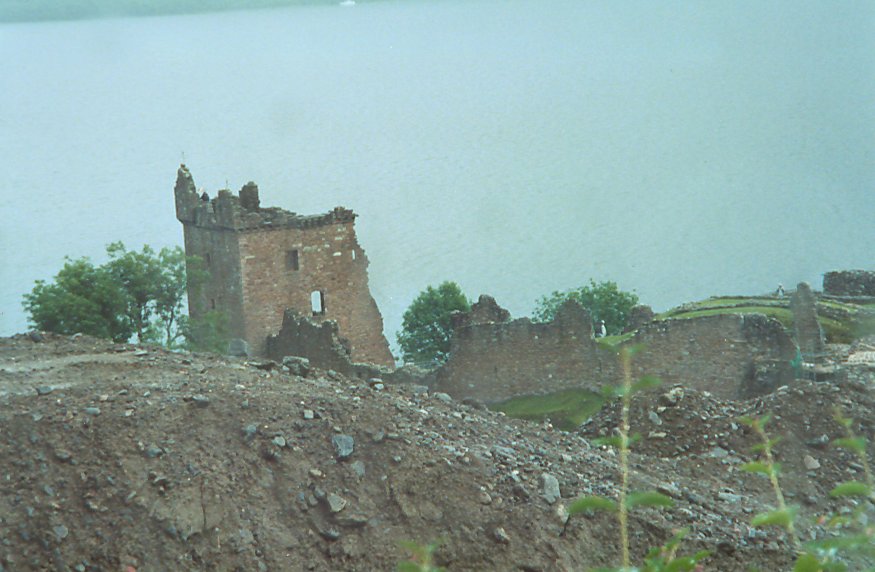 Part of the ruins of Urquhart Castle, with Loch Ness in the background. Urquhart Castle is being restored, and a new visitor's center was under construction when we passed through. No, that is not the new visitor's center, but presumably an under-croft of the castle.