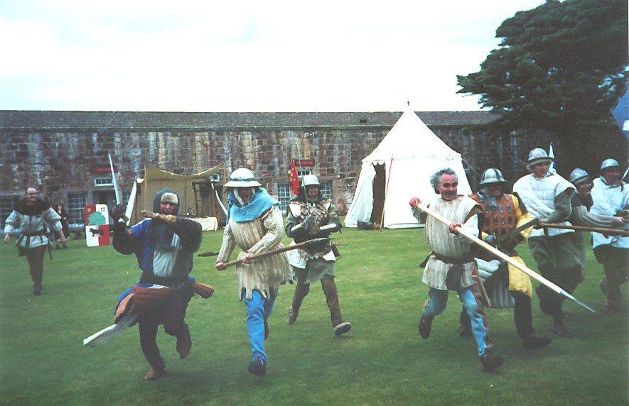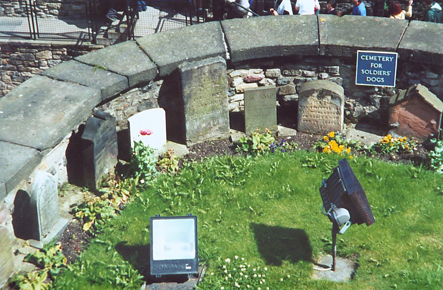 Re-enactors charge the crowd at Fort George At Edinburgh Castle there is this cemetery for soldier's dogs.