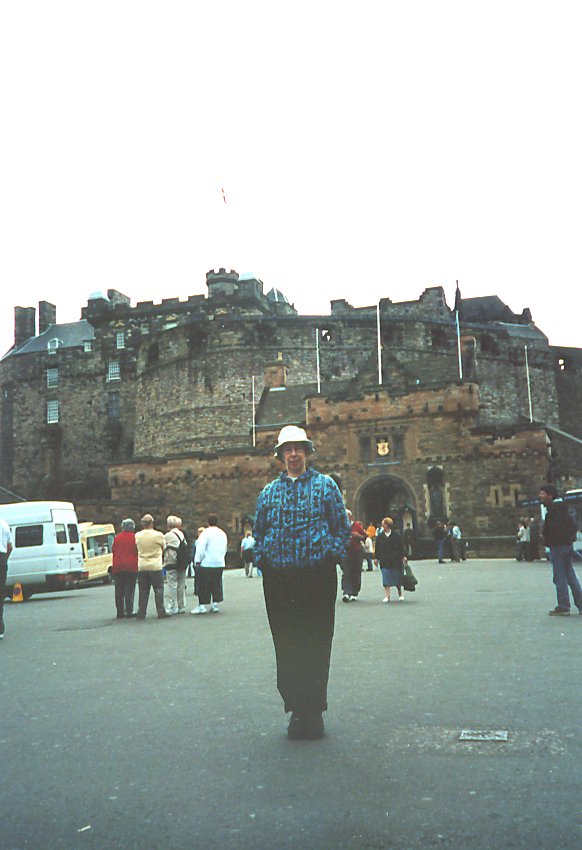 Peggy, with the entrance to Edinburgh Castle in the background. If you go there plan to make a day of it.