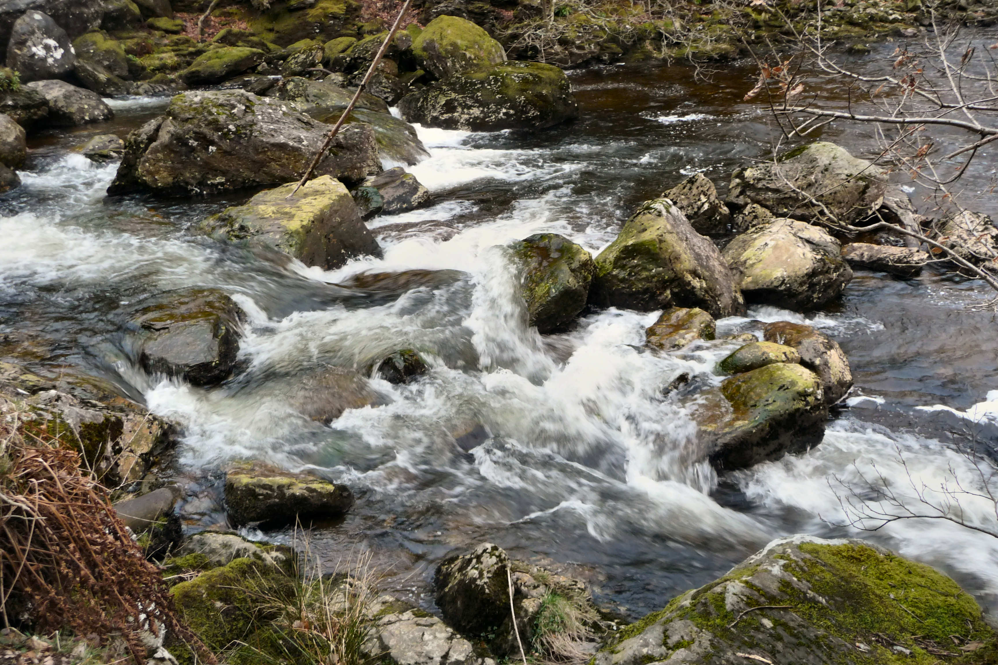 Snade Burn rushes over rocks and boulders and makes a picturesque scene